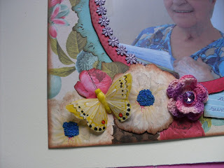 Nas regrinhas tinha sketch, mãe como tema, cores a serem utilizadas, o termo 'sunshine'...e por aí vai...confesso que lidar com cores vivas não foi muito fácil pra mim mas, acho que consegui com a ajuda desse papel maravilhoso da Prima; o círculo de cardstock turqueza fui eu que fiz a borda com furador; gaiola e passarinho(forrado com papel que ganhei da Ana Stela)da MD;flor de crochê com miolo de cristal; ramos e flores recortadas(duas delas com miolo de bit colors);borboletinhas e fita.A foto imprimi em casa, recortei e colei sobre cardstock pink e rodeei com passamanaria