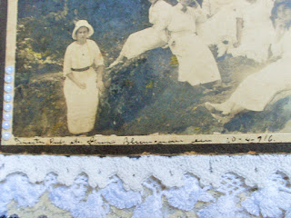 Então criei meu projeto em cima destes três itens... usei uma tela de 20x30cm, algodão cru, rendas e mais rendas, flores, pérolas, crochê, moldurinha de chipboard, gaiolinha de cardstok, título da TEC e uma foto original de 1916.