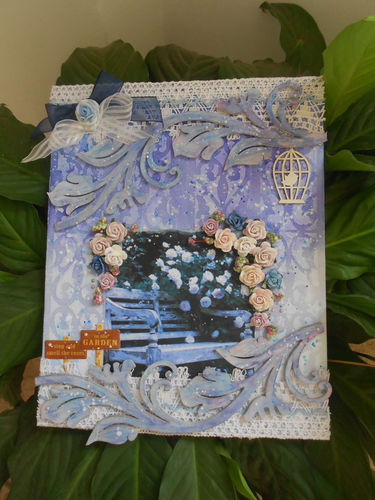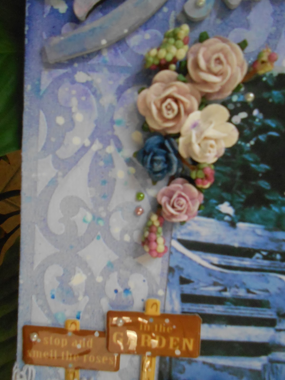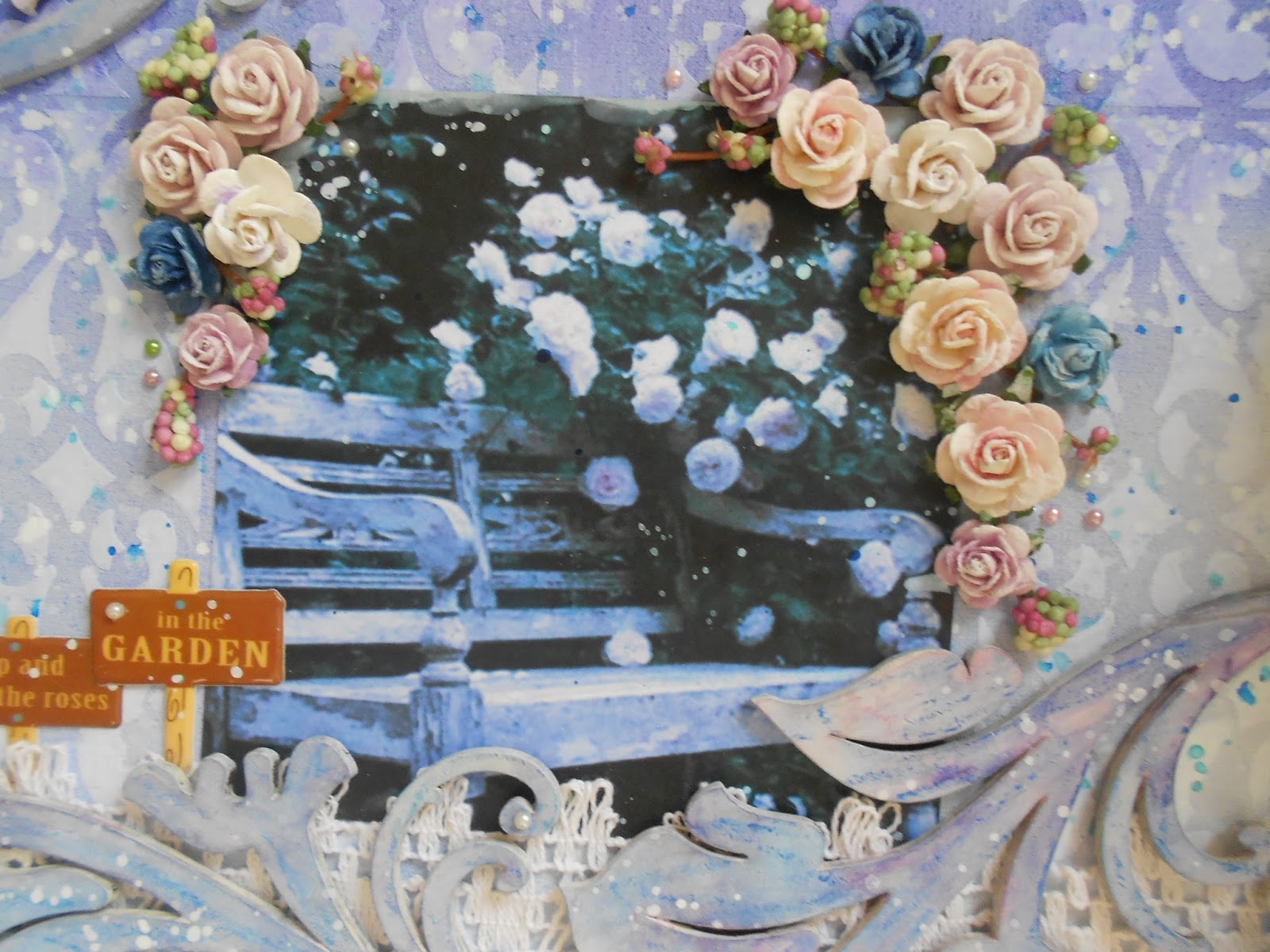 The lavender background colour reminds me of driving through Provence with its gorgeous lavender fields! Beautiful - and I love those wonderful flourishes that you added too. Thanks so much for joining in our Shabby Garden challenge at Anything But Cute. Anne xx